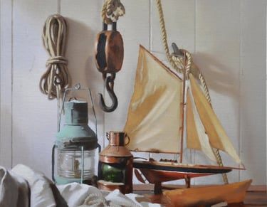 Still life paintings are a favorite of mine. They require more time and effort than you would normally think! It's a challenge to build a story with objects and settings. I'm always on the look out for interesting objects and props to utilized in my next still life composition.