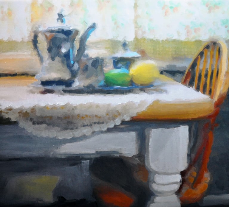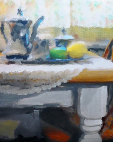 Still life paintings are a favorite of mine. They require more time and effort than you would normally think! It's a challenge to build a story with objects and settings. I'm always on the look out for interesting objects and props to utilized in my next still life composition.